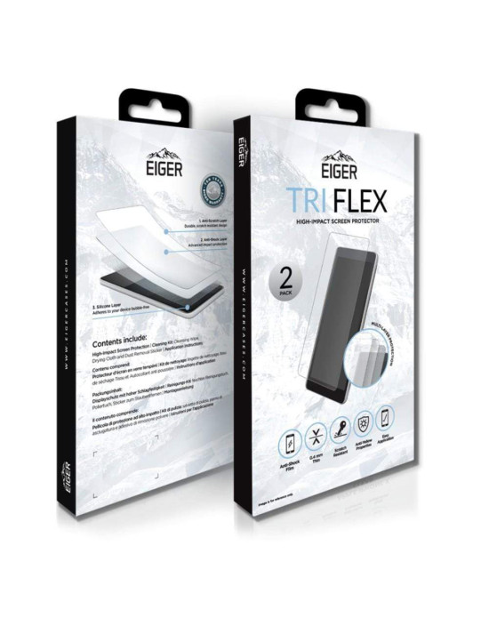Tri-Flex's three-layer design is comprised of an Anti-Scratch, Anti-Shock and Silicone layer to protect your device. The Anti-Scratch layer is durable and scratch resistant, the Anti-Shock layer offers advanced impact protection whilst the Silicone layer ensures the screen protector adheres to your device bubble-free.