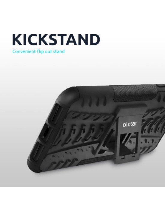 The hard attachable exoskeleton doesn't just add strength to the silicone shell, but features an ergonomically designed stand that pulls out to give the perfect viewing angle for videos and pictures. The stand then simply clicks back into place and lays completely flat so there is zero bulk added to the case.