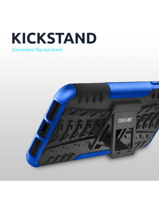 The hard attachable exoskeleton doesn't just add strength to the silicone shell, but features an ergonomically designed stand that pulls out to give the perfect viewing angle for videos and pictures. The stand then simply clicks back into place and lays completely flat so there is zero bulk added to the case.