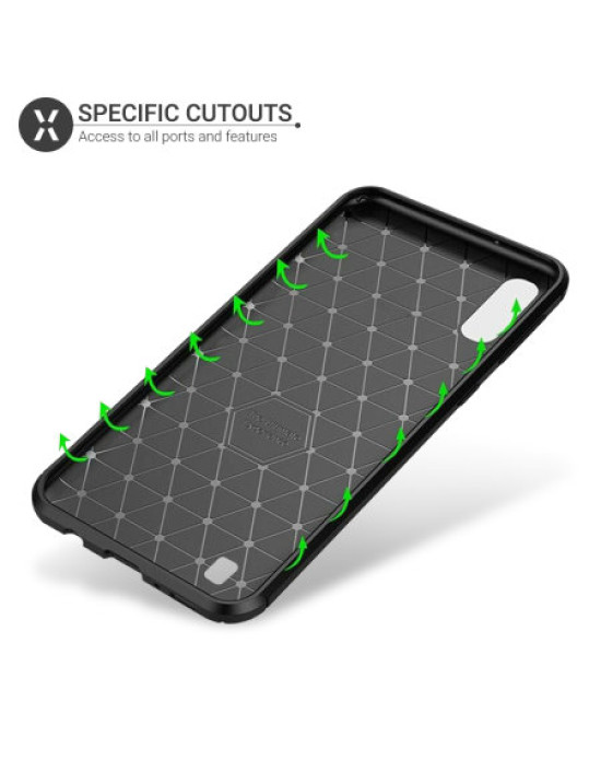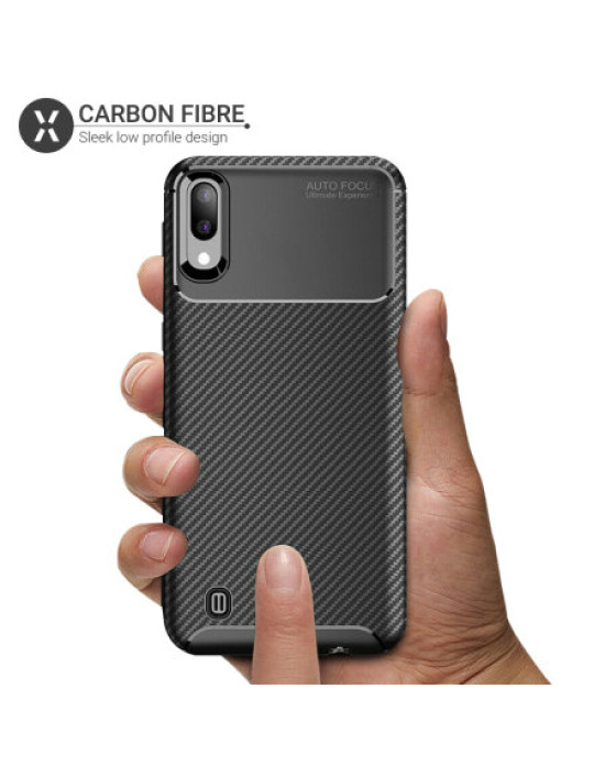 Protect your phone from scratches, knocks and bumps with the Olixar Carbon Fibre case for the Samsung Galaxy M10. Featuring a slim-fitting textured TPU body and a smooth carbon fibre print, the case will tirelessly protect your device, without adding unnecessary bulk. The TPU core also features shock absorbing strength , which can deflect shock force and aid heat dissipation.