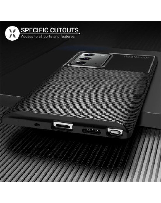 Protect your phone from scratches, knocks and drops with the Olixar carbon-fibre protective case for the Samsung Galaxy Note 20 5G. Featuring a rugged, flexible, textured TPU body and that is tough enough to protect your device, without adding unnecessary bulk. The flexible and robust TPU core features shock absorbing strength allied with a stunning carbon-fibre and brushed metal style finish on the back. The inner patterns also help deflect shock force and aid heat dissipation.