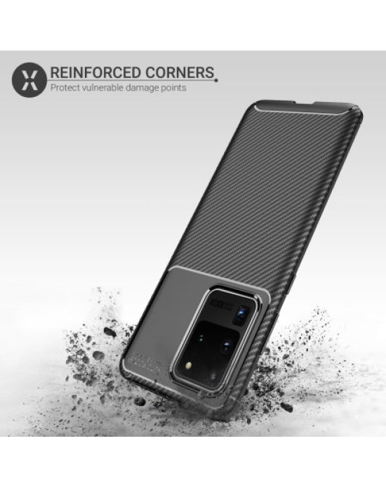 Protect your phone from scratches, knocks and bumps with the Olixar Carbon Fibre case for the Samsung Galaxy S20 Ultra. Featuring a slim-fitting textured TPU body and a smooth carbon fibre print, the case will tirelessly protect your device, without adding unnecessary bulk. The TPU core also features shock absorbing strength , which can deflect shock force and aid heat dissipation.