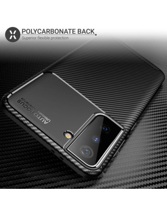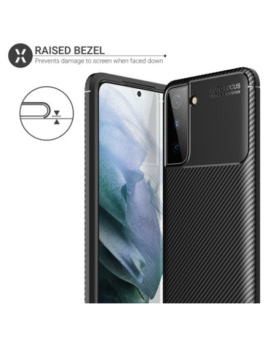 Protect your phone from scratches, knocks and drops with the Olixar carbon-fibre protective case for the Samsung Galaxy S21. Featuring a rugged, flexible, textured TPU body and that is tough enough to protect your device, without adding unnecessary bulk. The flexible and robust TPU core features shock absorbing strength allied with a stunning carbon-fibre and brushed metal style finish on the back. The inner patterns also help deflect shock force and aid heat dissipation.