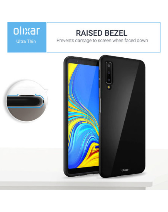 This case has a raised bezel that prevents your Galaxy A7 2018' screen from coming into contact with any flat surface when you place the phone face down. This prevents your Galaxy A7 2018' screen from getting any unwanted scratches and dirt on it.