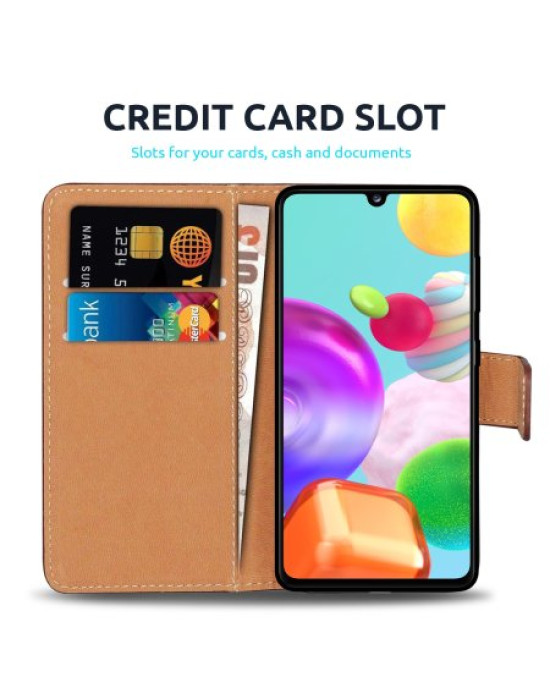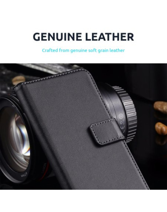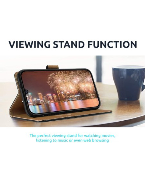 The back cover of the Olixar Genuine Leather Wallet Case also becomes a desk stand by folding onto itself horizontally. This creates the perfect viewing stand for watching movies, listening to music or even web browsing.
