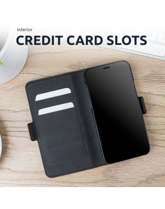 With interior credit card slots and a document pocket, the Olixar genuine leather wallet case is perfect for storing anything from your passport or note paper, to train tickets and receipts.