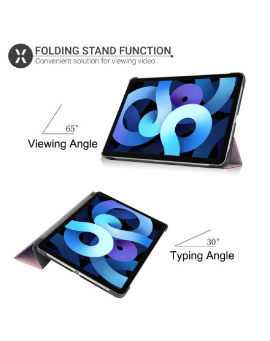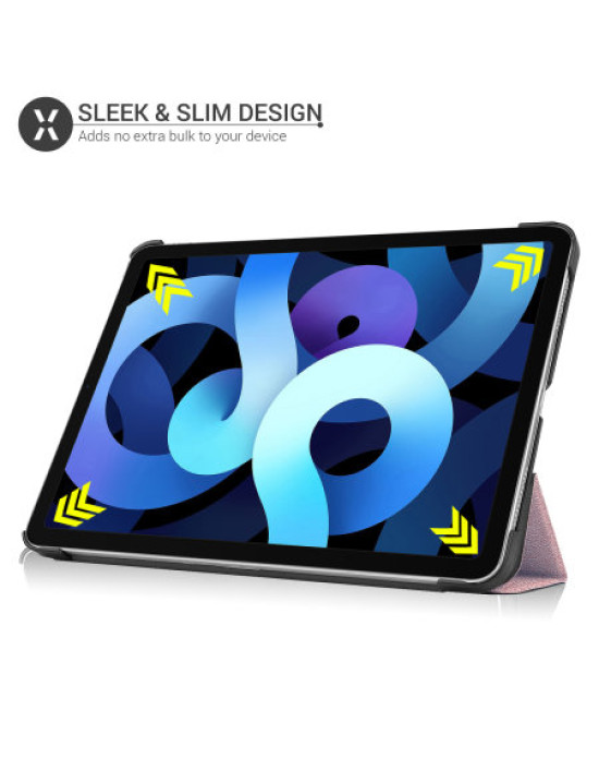 Offering excellent protection in a stylish rose-gold package, the Olixar Stand Case for the iPad Air 4 2020 has a leather-effect outer lining and soft microfibre interior that keeps your iPad looking as good as the day you bought it. It is padded to provide good protection against minor impacts, but is still thin enough that it does not add much bulk to your device.