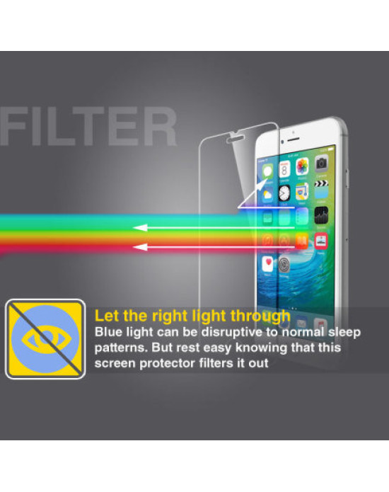 This screen protector has built-in anti blue-light technology that filters the potentially harmful blue light rays that are produced by the phones display, this helps to protect your retina and improve your sleep. It also reduces eye fatigue.