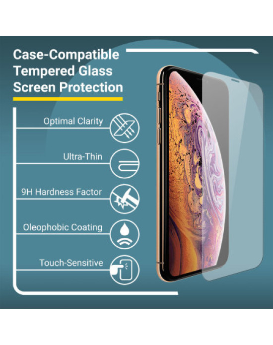 Crafted with tempered glass technology inside, the Olixar Tempered Glass Screen Protector for the iPhone XS Max provides you with a shatterproof design that guards your precious display from accidental bangs and drops.