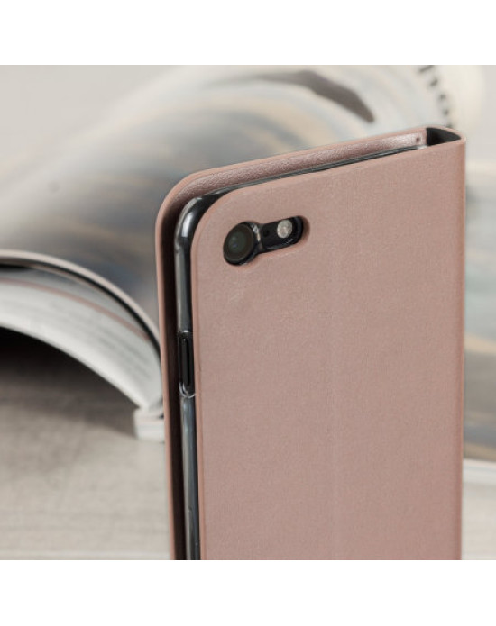 Olixar Leather-Style iPhone SE 2020 Wallet Stand Case - Rose Gold