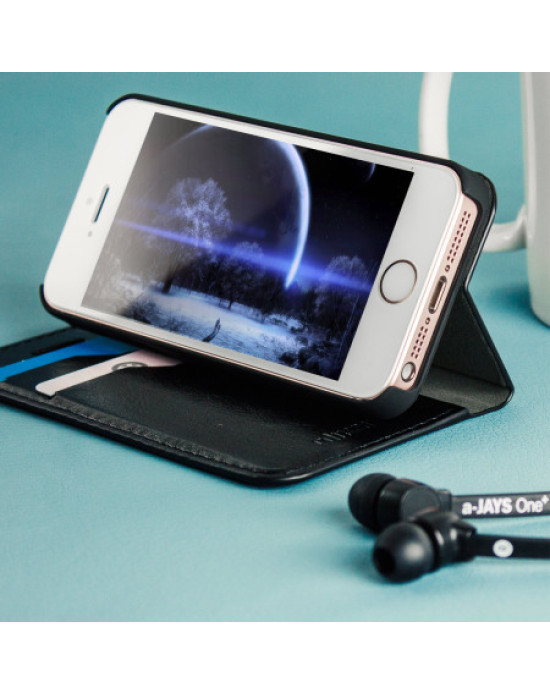 Olixar Leather-Style iPhone SE Wallet Stand Case - Black