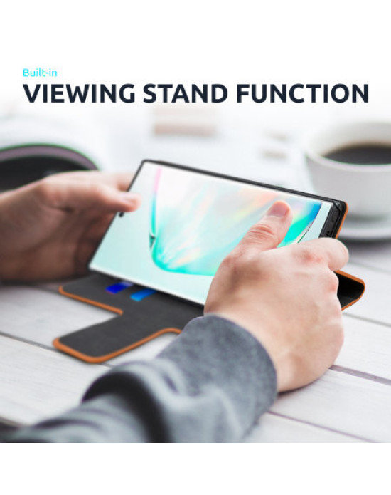 The Olixar leather-style wallet case has been specially designed for the Samsung Galaxy S21 Ultra, so you are guaranteed the best possible fit. Underneath the sturdy leather-style casing is a strong and robust plastic frame, that will keep your handset safe and protected, guarding it from the rigours of general use.