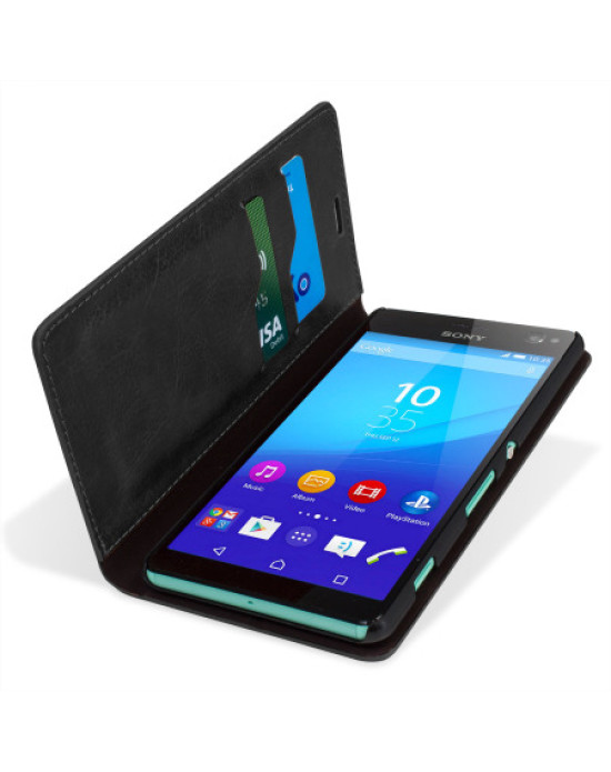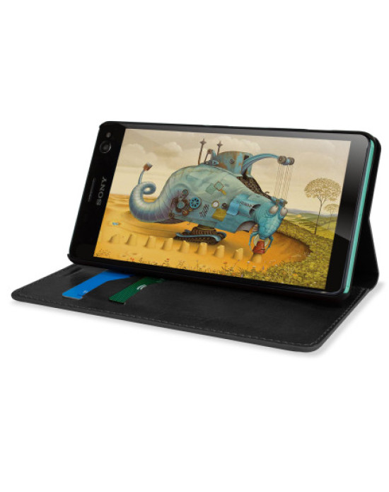 Olixar Leather-Style Sony Xperia C4 Wallet Stand Case - Black