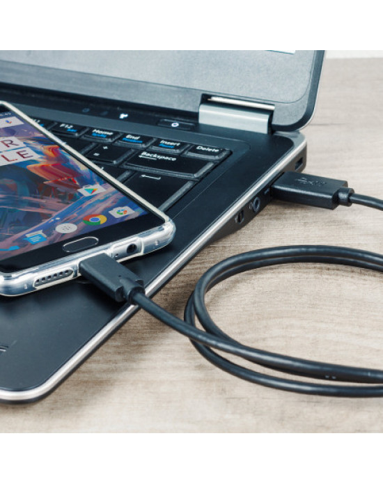 This quality cable allows you to connect your USB-C compatible hardware to your laptop or desktop, in order to charge your phone and exchange / sync data simultaneously.