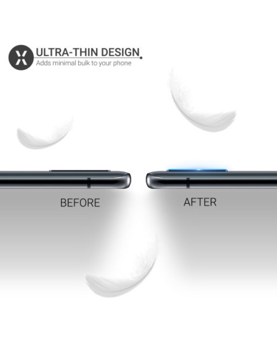 This ingenious solution to protecting your Samsung Galaxy A90 5G camera involve a minimal-thickness protector. The underside of the protector sits flat on the camera and matches the contours perfectly.