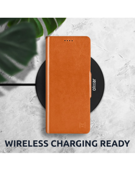 Featuring 100% genuine soft grain leather, this lightweight yet sturdy case from Olixar keeps your Samsung Galaxy A42 5G safe and secure with a professional look that is designed to impress as well as be completely practical. By using slim, attractive soft grain leather, your phone will slip easily in and out of your pocket or bag. The casing will age beautifully and only improve with time, as all good leather goods should.