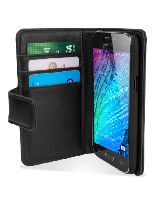 Olixar Samsung Galaxy J1 2015 Genuine Leather Wallet Case - Black