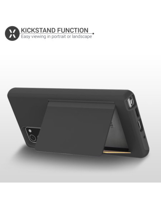 The Olixar Amour Vault Case features a back compartment that can hold up to 2 credit cards or IDs. This is a secure and ingenious way of storing your most vital cards and also means you can leave your wallet at home if you want to.