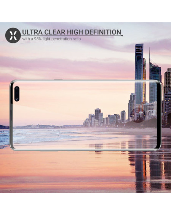 This ingenious solution to protecting your Samsung Galaxy S10 5G screen involves a tempered glass protector that covers most of the the edges of the curved screen, allowing you to use most cases on the market with it too. The underside of the screen protector sits flat on the screen and follows the contours of your phone's screen perfectly. This covers the entire screen and offers complete protection. No more compromising by leaving the curved edges exposed and this also ensures no dirt will get in - so no more "halo effect". By allowing you to use a case, you can have the complete protective solution for your phone.