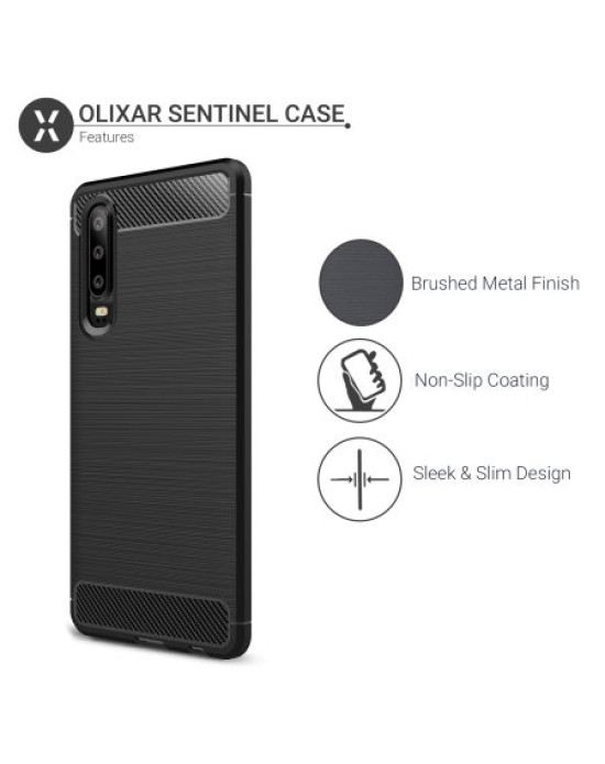 Protect your phone from scratches, knocks and drops with the Olixar Sentinel for the Huawei P30. Featuring a rugged, flexible, textured TPU body and that is tough enough to protect your device, without adding unnecessary bulk. The flexible and robust TPU core features shock absorbing strength allied with a stunning carbon-fibre and brushed metal style finish on the back. The inner patterns also help deflect shock force and aid heat dissipation.