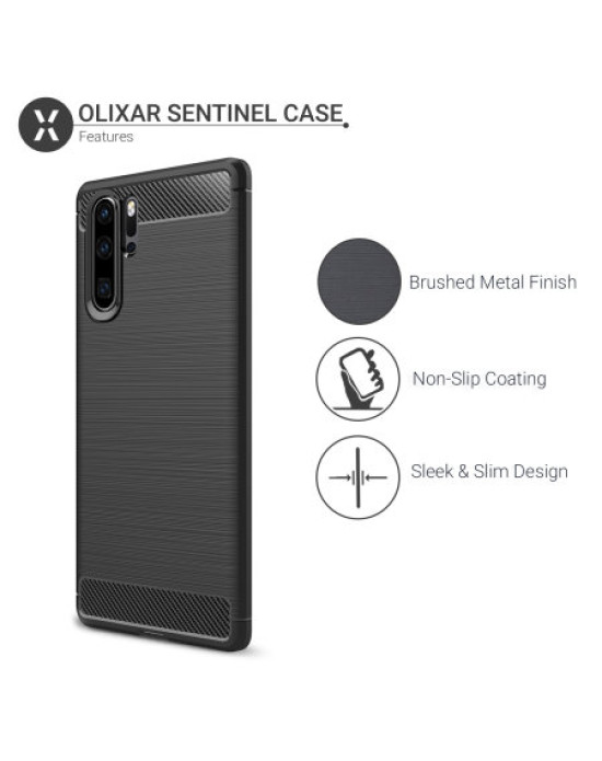 Protect your phone from scratches, knocks and drops with the Olixar Sentinel for the Huawei P30 Pro. Featuring a rugged, flexible, textured TPU body and that is tough enough to protect your device, without adding unnecessary bulk. The flexible and robust TPU core features shock absorbing strength allied with a stunning carbon-fibre and brushed metal style finish on the back. The inner patterns also help deflect shock force and aid heat dissipation.
