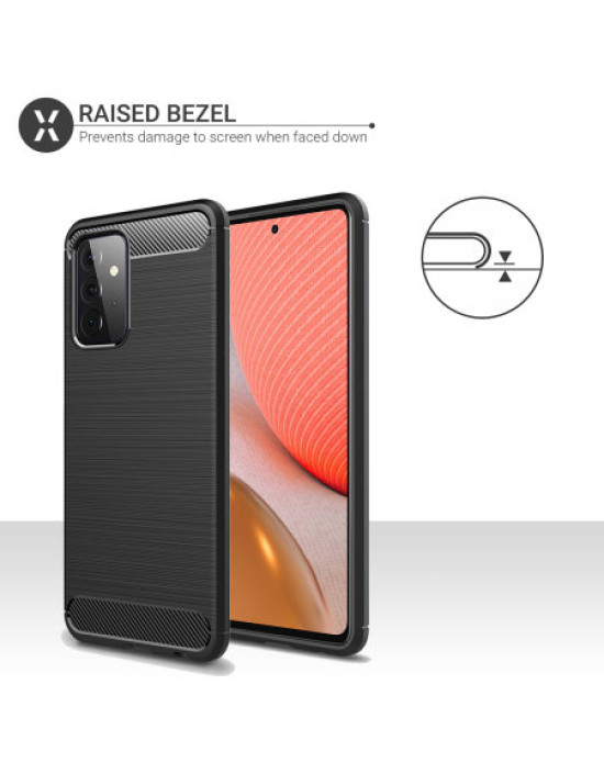 Protect your phone from scratches, knocks and drops with the Olixar Sentinel for the Samsung Galaxy A72. Featuring a rugged, flexible, textured TPU body and that is tough enough to protect your device, without adding unnecessary bulk. The flexible and robust TPU core features shock absorbing strength allied with a stunning carbon-fibre and brushed metal style finish on the back. The inner patterns also help deflect shock force and aid heat dissipation.
