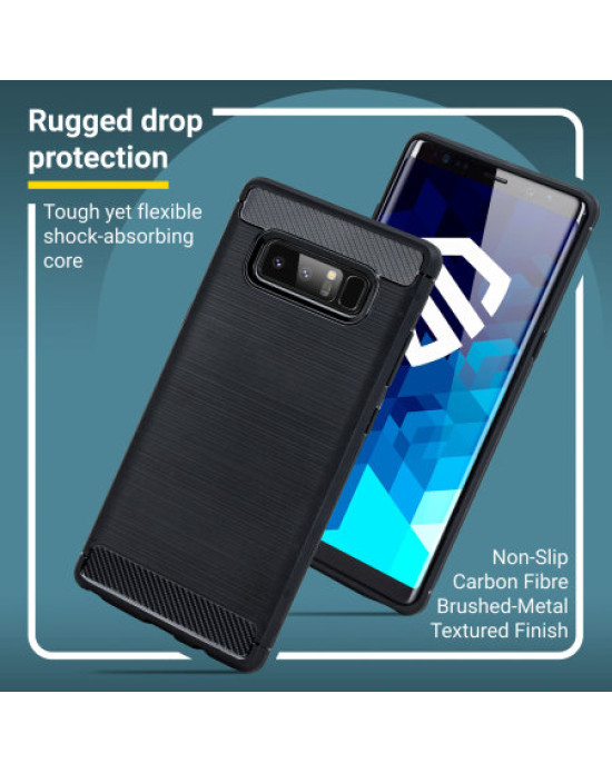 Protect your phone from scratches, knocks and drops with the Olixar Sentinel for the Samsung Galaxy Note 8. Featuring a rugged, flexible, textured TPU body and that is tough enough to protect your device, without adding unnecessary bulk. The flexible and robust TPU core features shock absorbing strength allied with a stunning carbon-fibre and brushed metal style finish on the back. The inner patterns also help deflect shock force and aid heat dissipation.