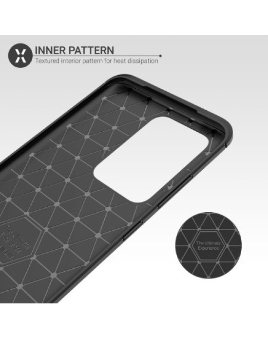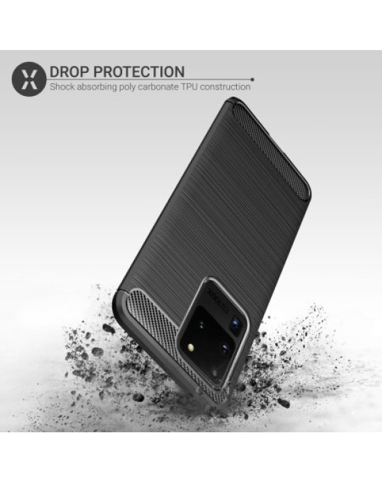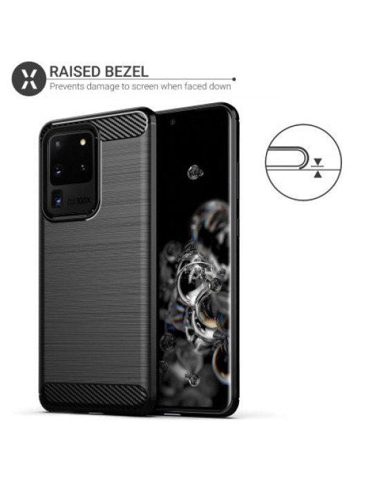 Protect your phone from scratches, knocks and drops with the Olixar Sentinel for the Samsung Galaxy S20 Ultra. Featuring a rugged, flexible, textured TPU body and that is tough enough to protect your device, without adding unnecessary bulk. The flexible and robust TPU core features shock absorbing strength allied with a stunning carbon-fibre and brushed metal style finish on the back. The inner patterns also help deflect shock force and aid heat dissipation.