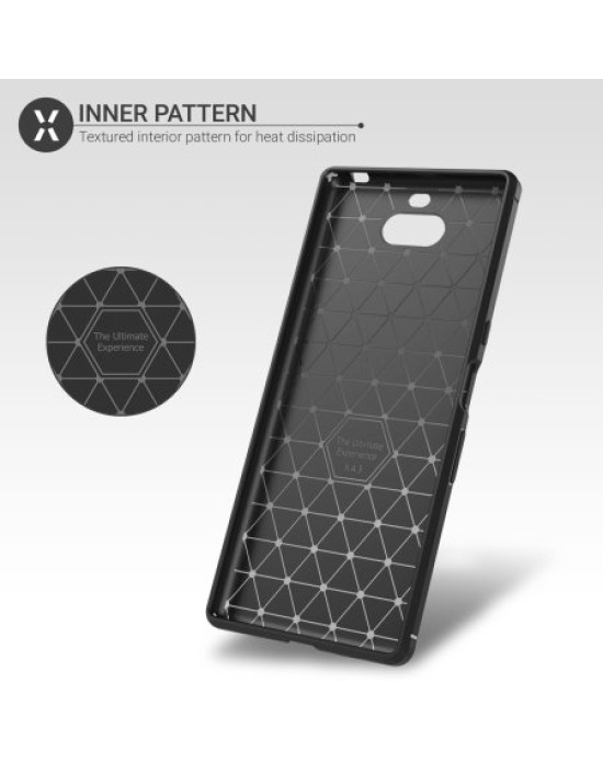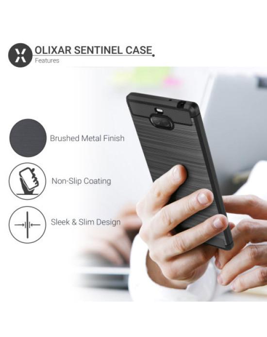 Protect your phone from scratches, knocks and drops with the Olixar Sentinel for the Sony Xperia 10 Plus. Featuring a rugged, flexible, textured TPU body and that is tough enough to protect your device, without adding unnecessary bulk. The flexible and robust TPU core features shock absorbing strength allied with a stunning carbon-fibre and brushed metal style finish on the back. The inner patterns also help deflect shock force and aid heat dissipation.