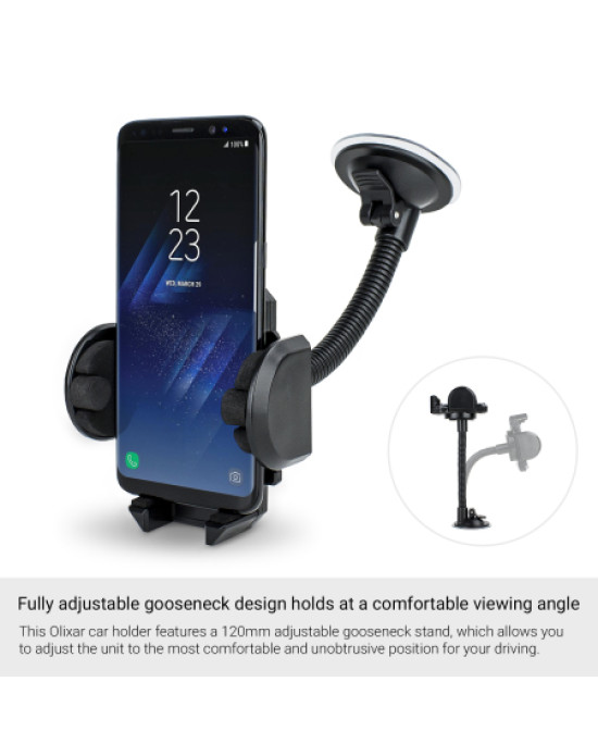 This Olixar car holder features a 120mm adjustable gooseneck stand, which allows you to adjust the unit to the most comfortable and unobtrusive position for your driving.