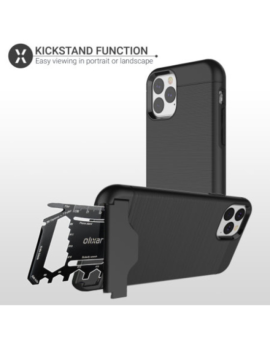 You don't need to be a intrepid outdoors person to make use of the X-Rangers capabilities. Buy hey, if it's designed for the great outdoors, it's pretty much good for everyday use too. Featuring a robust multi-layered design, the Olixar X-Ranger provides excellent protection for your iPhone 11 Pro Max and just might be the best all-round utility case available. This hard-wearing tough case safe-guards your phone against whatever nature can throw at it, keeping it secure at all times - even in the most extreme of conditions. With rubberised non-slip bumper pads, textured brushed metal effect surfaces for extra grip, a secure multi-tool / card compartment and a handy flip out kickstand, few other cases come close to the protection and features on offer here. The X-Ranger is suitable for commuting, outdoor travel and everyday use in equal measure.