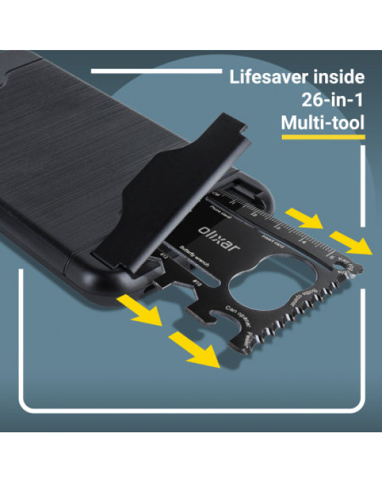 The Olixar X-Ranger case features an ingenious back compartment that can hold either the included multi-tool or a credit card-sized object or your choice. Access is gained by lifting the kickstand compartment up. This is a secure and ingenious way of storing your most vital cards and also means you can leave your wallet at home if you want to.