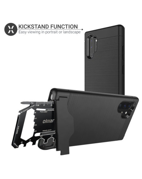 You don't need to be an intrepid outdoors person to make use of the X-Rangers capabilities. Buy hey, if it's designed for the great outdoors, it's pretty much good for everyday use too. Featuring a robust multi-layered design, the Olixar X-Ranger provides excellent protection for your Samsung Galaxy Note 10 Plus and just might be the best all-round utility case available. This hard-wearing tough case safe-guards your phone against whatever nature can throw at it, keeping it secure at all times - even in the most extreme of conditions. With rubberised non-slip bumper pads, textured brushed metal effect surfaces for extra grip, a secure multi-tool / card compartment and a handy flip out kickstand, few other cases come close to the protection and features on offer here. The X-Ranger is suitable for commuting, outdoor travel and everyday use in equal measure.