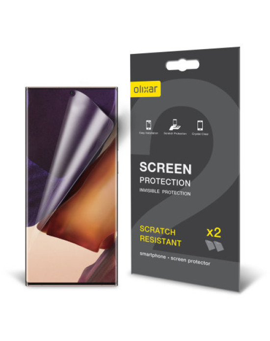 Keep your Samsung Galaxy Note 20 Ultra's screen in pristine condition with this Olixar scratch-resistant screen protector 2-in-1 pack. Easy to apply, these screen protectors are the ideal way to keep your display looking brand new.