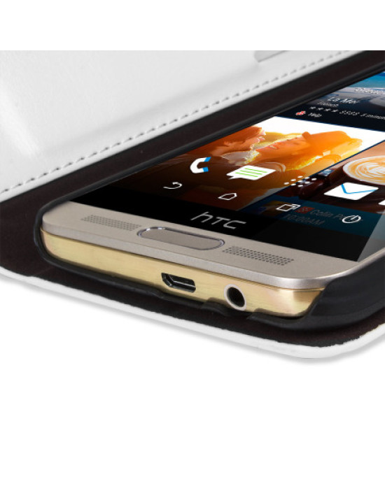 Olixar Leather-Style HTC One M9 Plus Wallet Stand Case - White