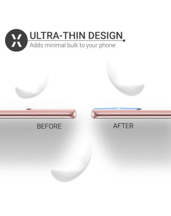 This ingenious solution to protecting your Samsung Galaxy S21 Plus camera involve a minimal-thickness protector. The underside of the protector sits flat on the camera and matches the contours perfectly.