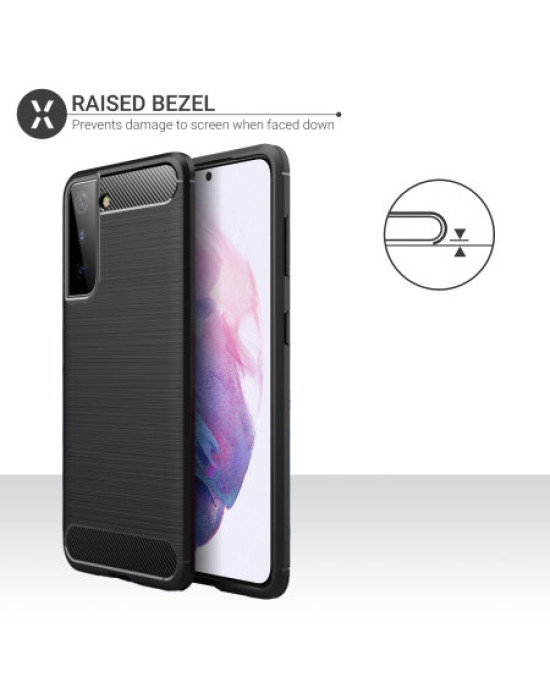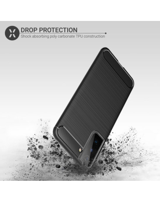 Protect your phone from scratches, knocks and drops with the Olixar Sentinel for the Samsung Galaxy S21 Plus. Featuring a rugged, flexible, textured TPU body and that is tough enough to protect your device, without adding unnecessary bulk. The flexible and robust TPU core features shock absorbing strength allied with a stunning carbon-fibre and brushed metal style finish on the back. The inner patterns also help deflect shock force and aid heat dissipation.