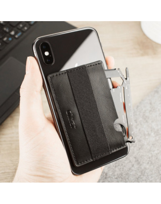 While it applies perfectly to your phone, what if you want to enjoy the protection of a case too? No problem. X-Ranger Everytool just needs 95 x 60mm of relatively flat surface to apply to, so most cases will be suitable. By sticking X-Ranger Everytool's pouch to your case you have an instant wallet case.