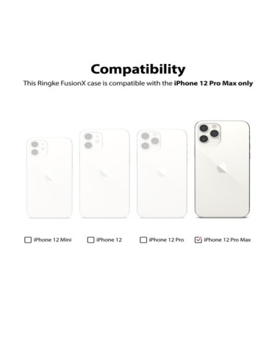 The Ringke Fusion X Design case offers a MIL-STD 810G - 516.6 Certified Military Grade Drop Protection. This means that the Fusion X Design for the iPhone 12 Pro Max has been extensively drop tested, so you can feel reassured that your device is well protected. This is, in part thanks to the Fusion X's edge protection design, which incorporates reinforced, shock absorbing TPU corners into the Fusion X Design's body.