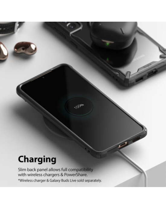 Designed to complement the unique styling of the S21's back, the Ringke Fusion X case has a completely transparent back so you can admire the full beauty of the Samsung Galaxy S21's design. With a slim profile and futuristic look, the bumper of this 2-part case helps the Fusion X to stand out from the rest.
