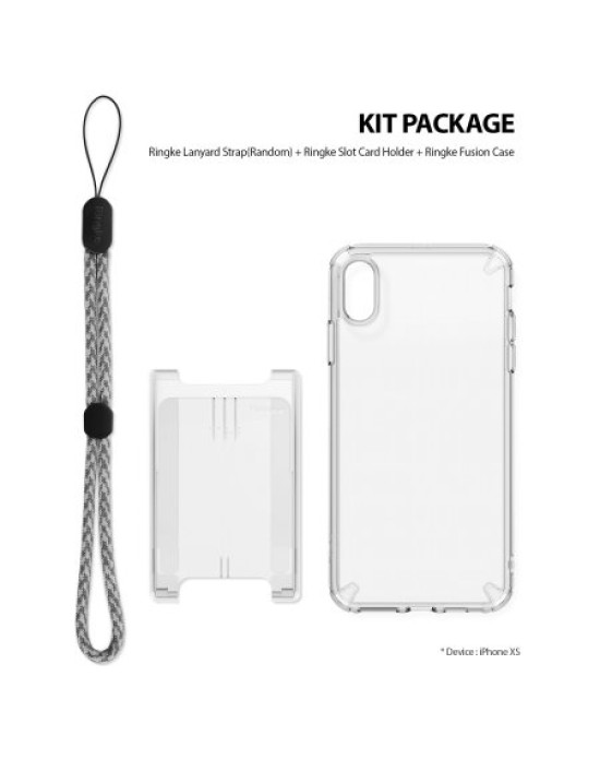 If you've ever wanted your phone case to carry everything you could possibly need while out and about, then this Ringke 3-in-1 Kit offering is for you. It’s designed to protect and complement the unique styling of the iPhone XS’s back, while functioning as a wallet. This tough dual-sided adhesive Ringke wallet attachment is the perfect solution for carrying up to 2 cards / ID and cash. Making this an ultra-portable option this 3-in-1 kit includes a matching wrist strap designed for the built-in lanyard hole to secure your phone to your hand.