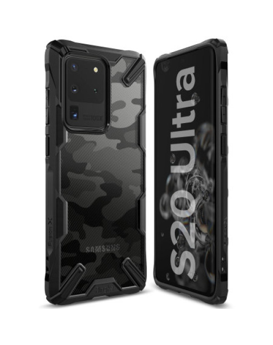 Ringke Fusion X Design Samsung Galaxy S20 Ultra Tough Case- Camo Black