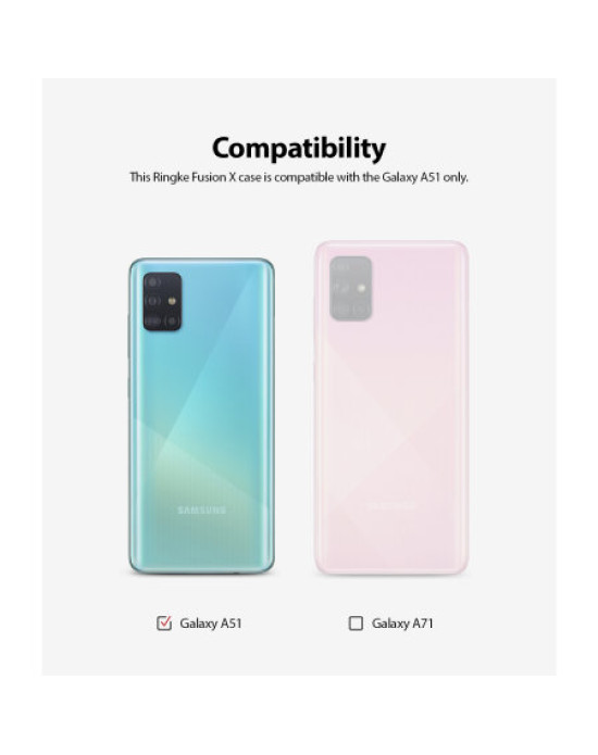 Designed to complement the unique styling of the Samsung A51's back, the Ringke Fusion X case has a completely transparent back so you can admire the full beauty of the Samsung A51's design. With a slim profile and futuristic look, the bumper of this 2-part case helps the Fusion X to stand out from the rest.