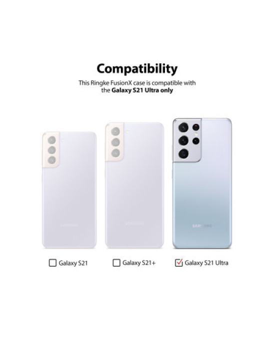 Designed to complement the unique styling of the S21 Ultra's back, the Ringke Fusion X case has a completely transparent back so you can admire the full beauty of the Samsung Galaxy S21 Ultra's design. With a slim profile and futuristic look, the bumper of this 2-part case helps the Fusion X to stand out from the rest.