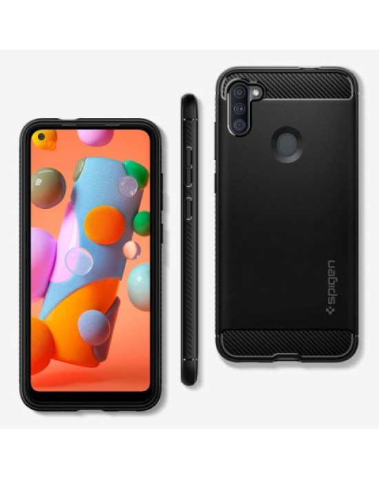 The new Rugged Armor is Spigen's latest addition, delivering exceptional protection in a slimline package. Made from a flexible TPU case, the Rugged Armor has been fitted with Spigen's trademarked Air Cushion Technology which absorbs shocks and impacts, keeping your Samsung Galaxy A11 safe and secure at all times.