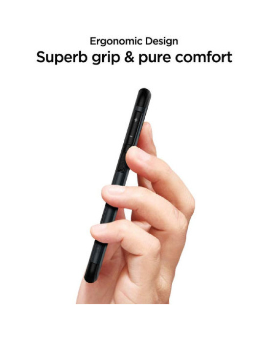 The clever part is that the Slim Armor case is made up of both a TPU unibody and a hard polycarbonate shell. This gives a hybrid combination that excels at offering protection and helps keep the size at a minimum.