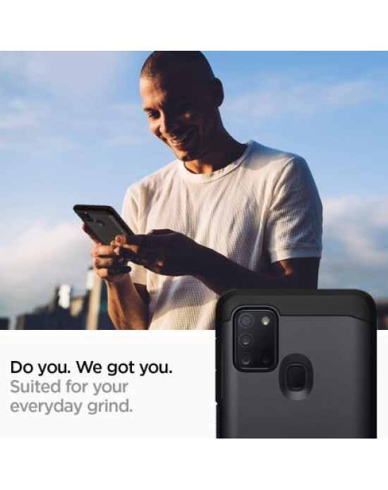 The Spigen Slim Armor case has been drop tested to meet or exceed Military Standard MIL-STD-810G 516.6, so you can be sure that your Samsung Galaxy A21s is comprehensively protected without adding unnecessary bulk.