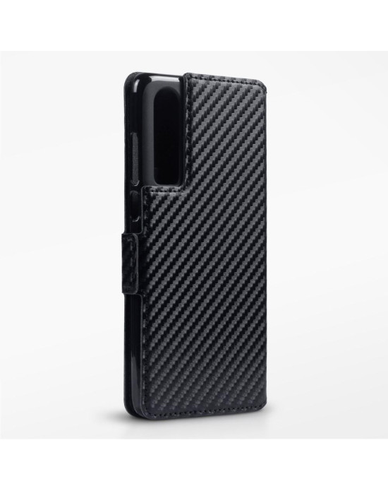 Terrapin Huawei P30 Ultra Slim PU Leather Wallet Case - Black Carbon Texture