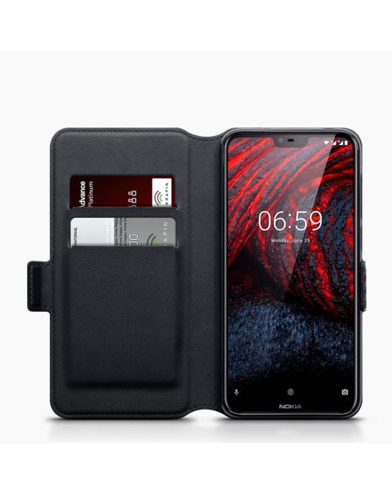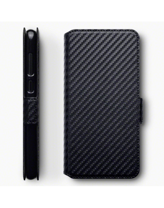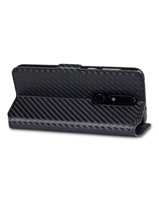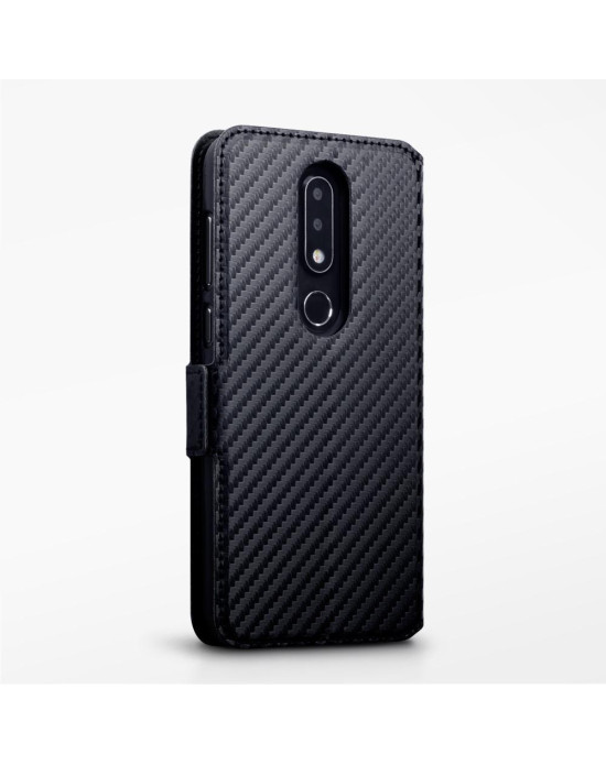 Terrapin Nokia 6.1 PLUS/X6 Ultra Slim Faux Leather Wallet Case - Black Carbon Fi