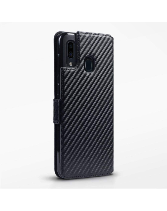 Terrapin Samsung Galaxy A30 Ultra Slim PU Leather Wallet Case - Black Carbon Tex
